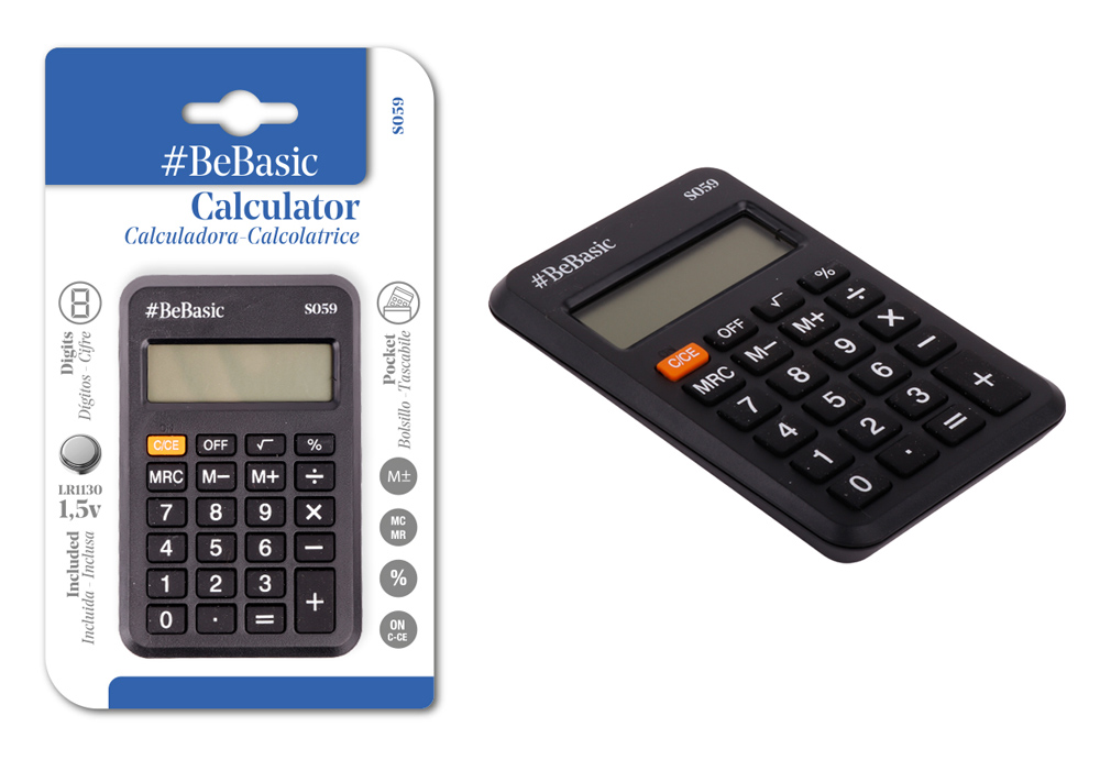 BEBASIC αριθμομηχανή τσέπης S059, μπαταρίας, 8 ψηφία, μαύρη