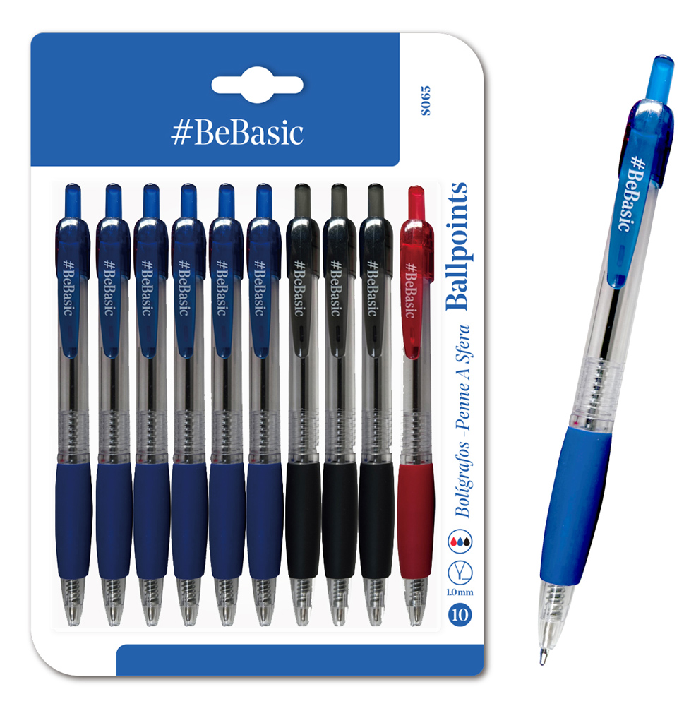 BEBASIC σετ στυλό διαρκείας ballpoint S065, 1mm μύτη, 14.5cm, μπλε/μαύρο/κόκκινο, 10τμχ