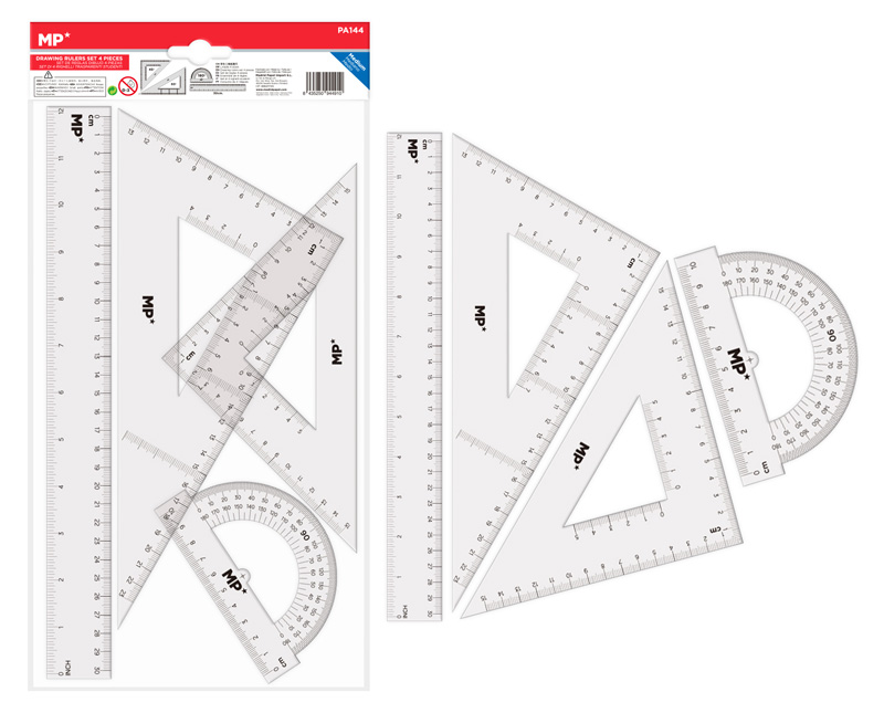 MP σετ χάρακες PA144, διάφανο πλαστικό, 4 τμχ