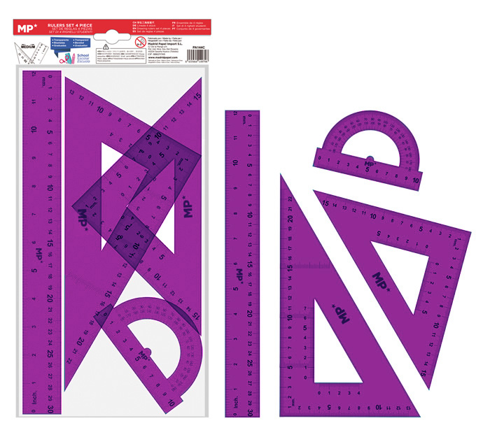 MP σετ χάρακες PA144C, διάφανο πλαστικό, 4τμχ, μωβ