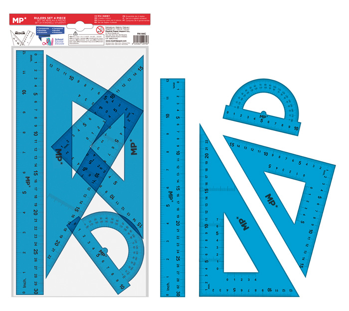 MP σετ χάρακες PA144C, διάφανο πλαστικό, 4τμχ, μπλε
