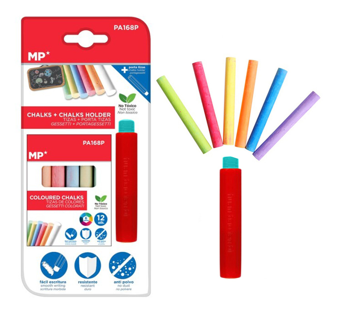 MP σετ χρωματιστές κιμωλίες με θήκη PA168P, διάφορα χρώματα, 12τμχ