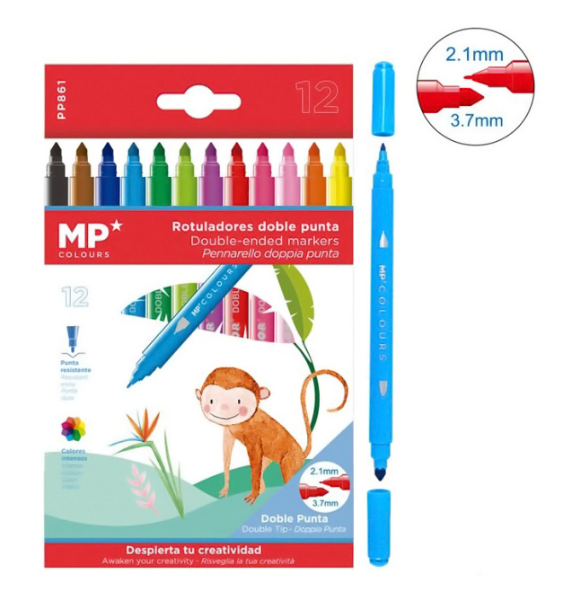 MP σετ χρωματιστών μαρκαδόρων PP913 με διπλή μύτη, 12τμχ