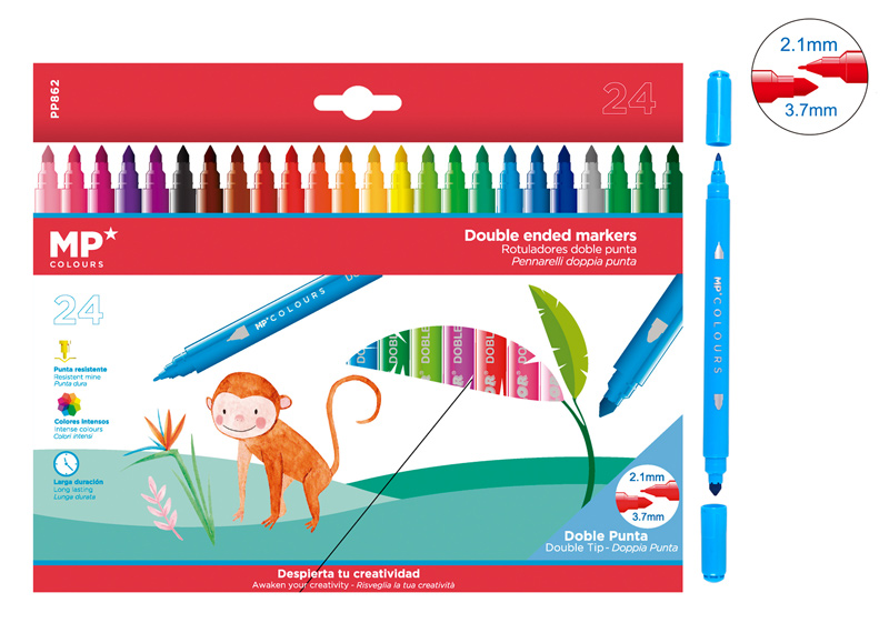 MP σετ χρωματιστών μαρκαδόρων με διπλή μύτη 2.1 & 3.7mm PP862, 24τμχ