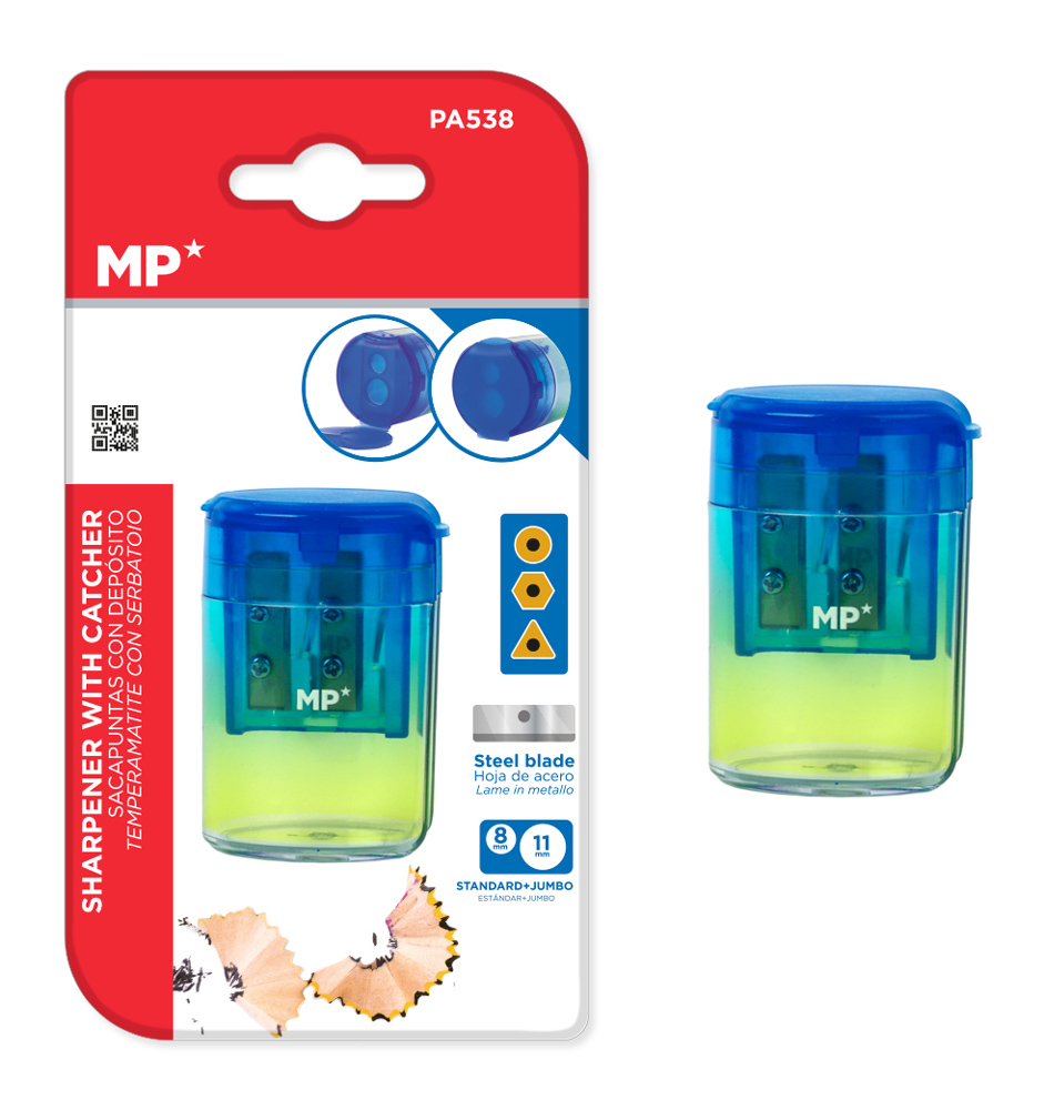 MP ξύστρα μολυβιών με κάδο PA538, 4.2x6cm, μπλε/πράσινη