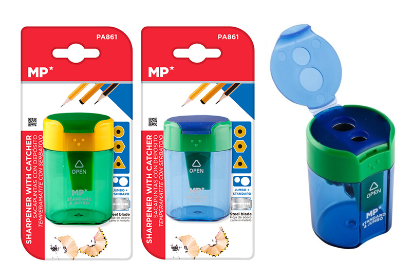 MP ξύστρα μολυβιών με κάδο PA834, 4x6cm, μπλε ή πράσινο, 1τμχ