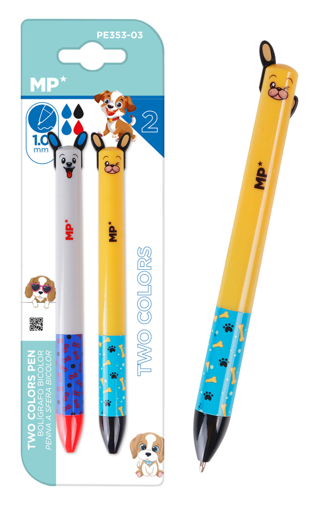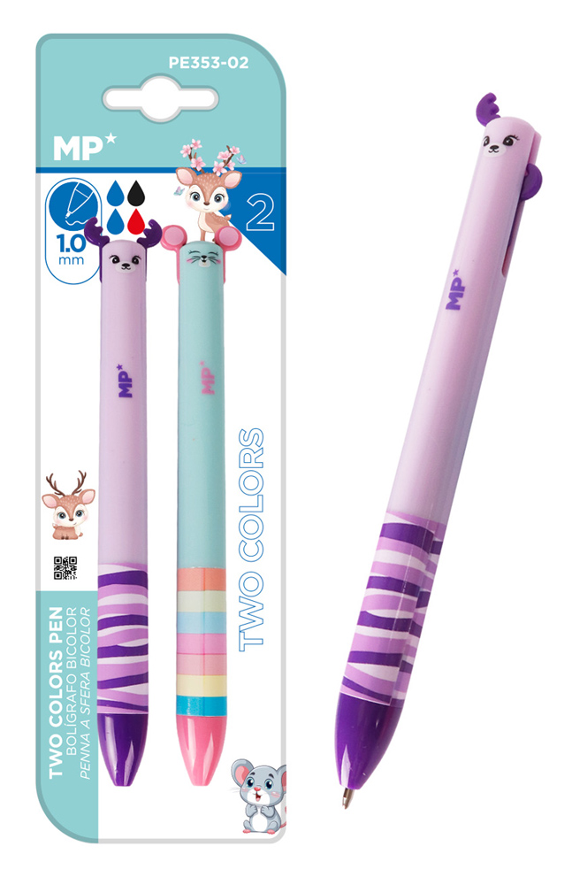MP παιδικό στυλό 2x χρωμάτων PE353-02, 1mm μύτη, μπλε-μαύρο/κόκκινο, 2τμχ
