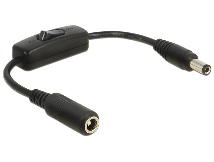 DELOCK καλώδιο/διακόπτης τροφοδοσίας 65497, 5.5×2.5mm, 20cm, μαύρο